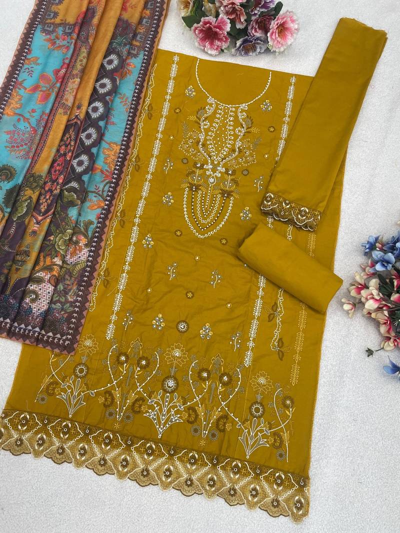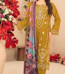 | Product Name | Yellow Cambric Cotton Embroidered & Khatli Work Suit | |