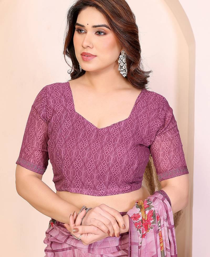 | Product Name | Purple Floral Georgette Saree With Lace Border & Blouse Piece | |