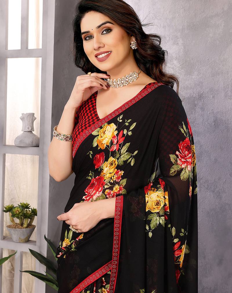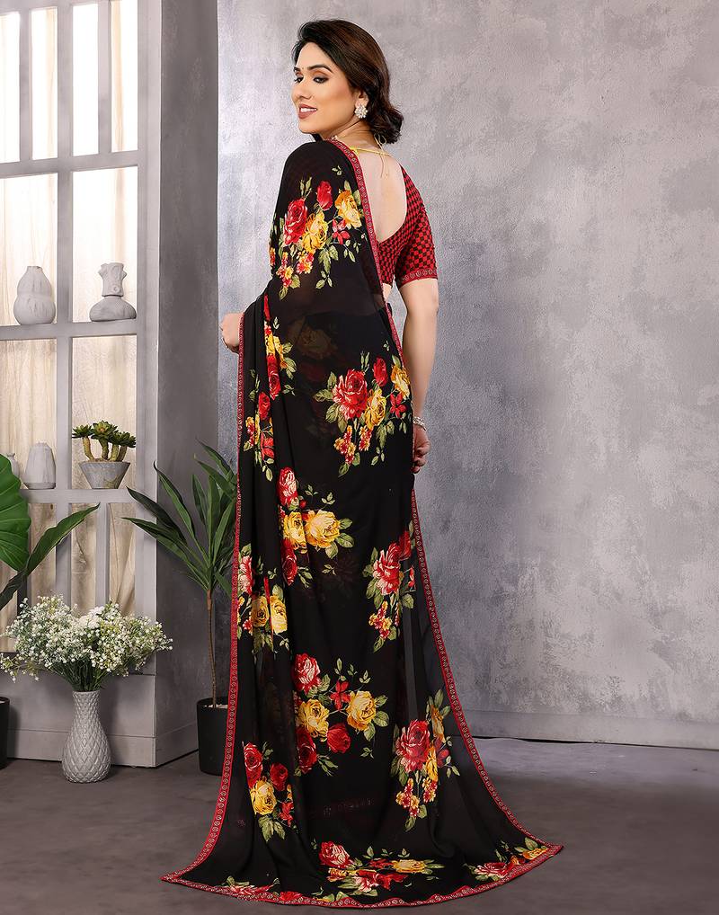 | Product Name | Black Printed Georgette Saree With Lace Border & Blouse Piece | |