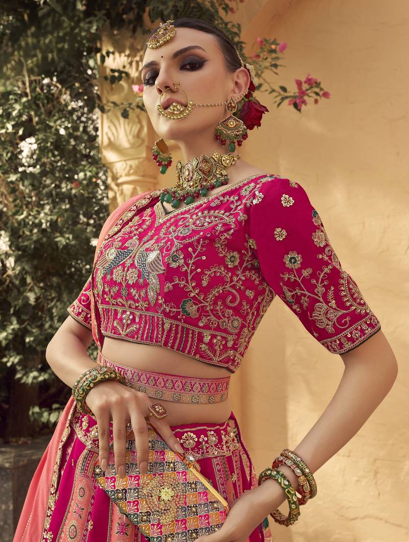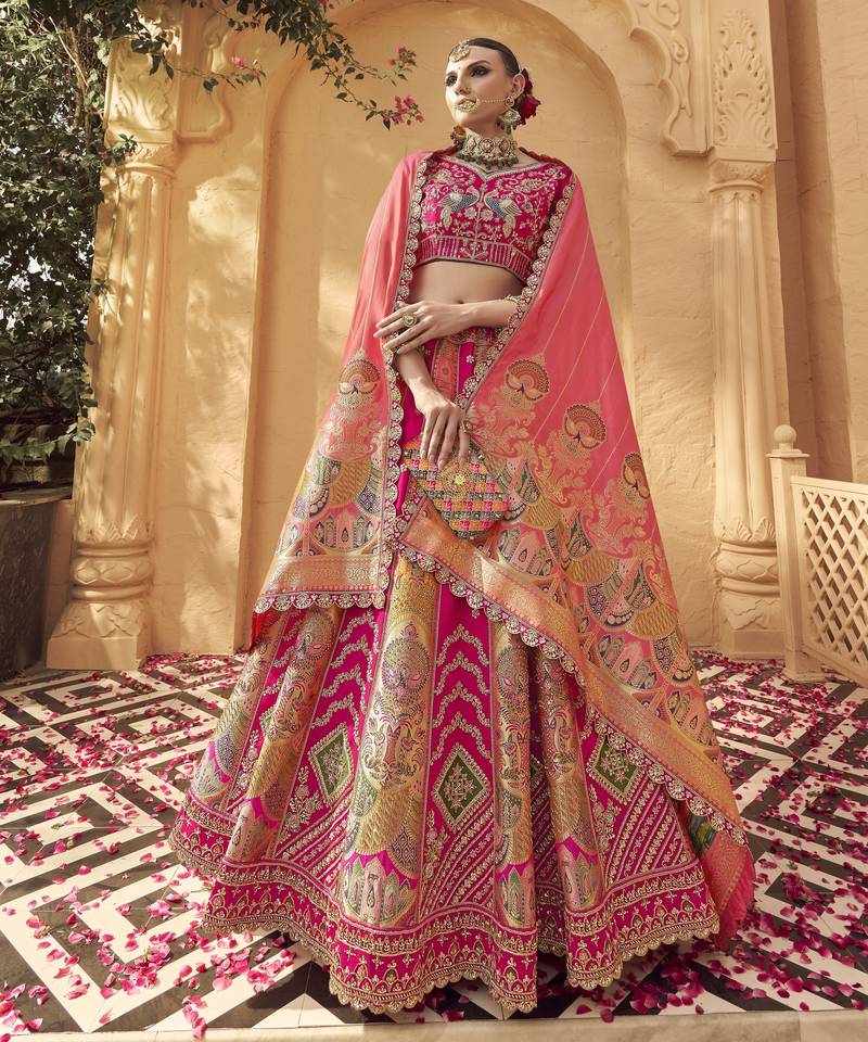 Banarasi silk lehenga choli with zari, sequins & swarovski work for wedding & reception