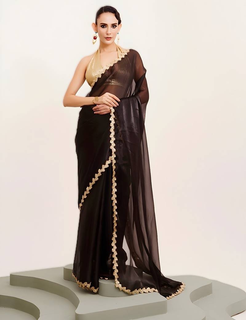 Product Name Black Bollywood Style Designer Soft Organza Saree With Sequins Lace Border