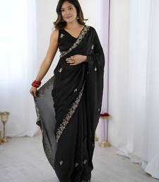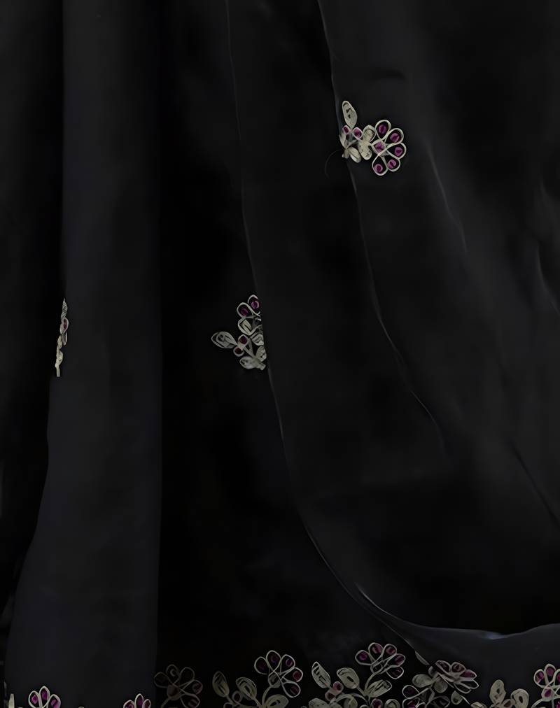 Black party wear fandy satin silk saree with embroidery work in 7 colors