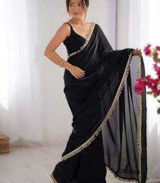 Black soft space silk saree with sequin zalar lace border & matching blouse