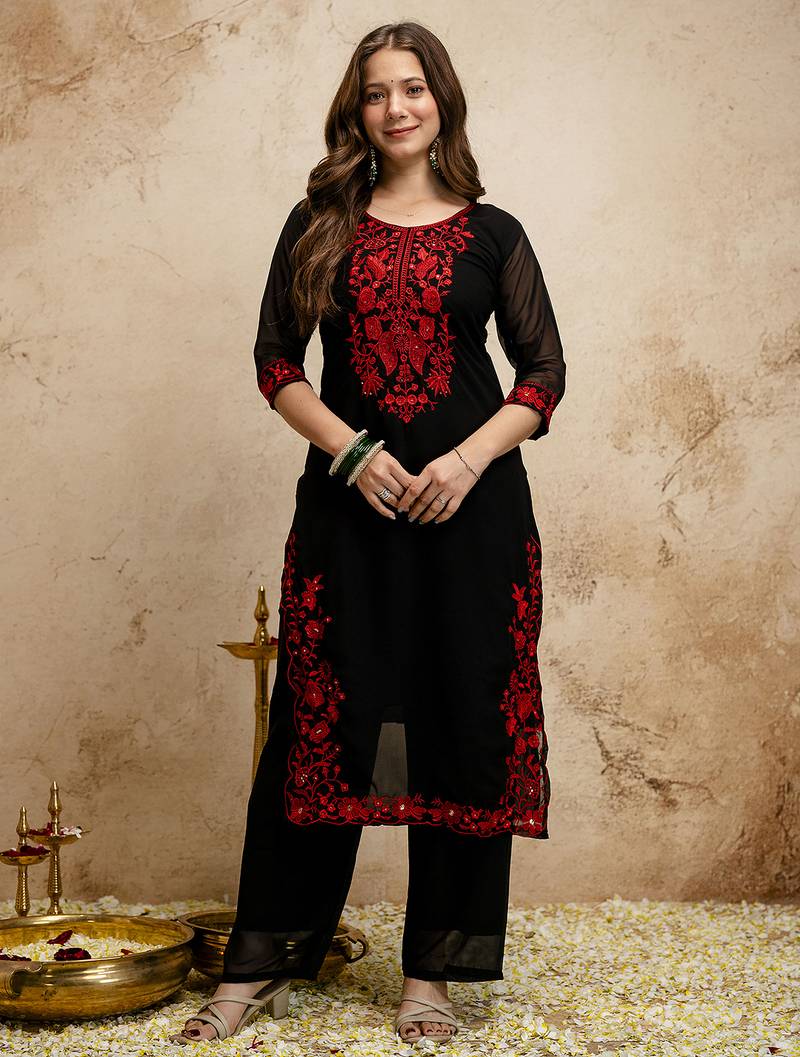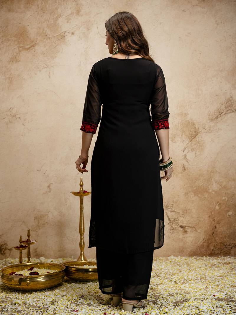 | Product Name | Black Women Georgette Embroidered Kurta With Embroidered Bottom And Georgette Dupatta Set | |