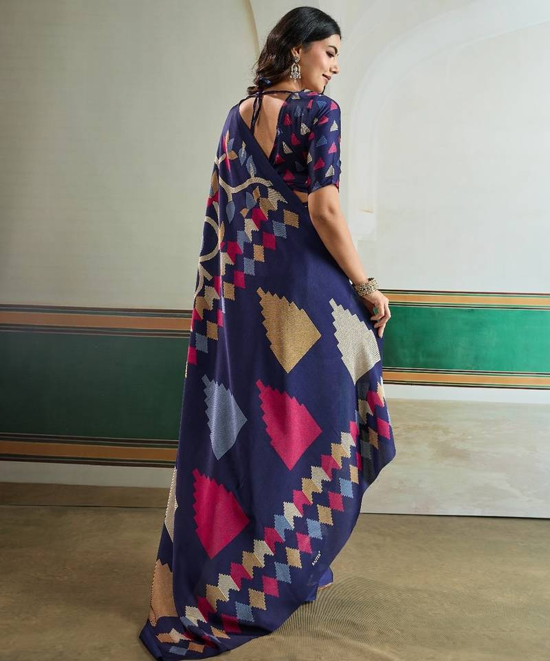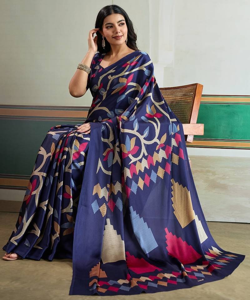 Blue color soft modal satin ajrakh print saree – timeless ethnic collection