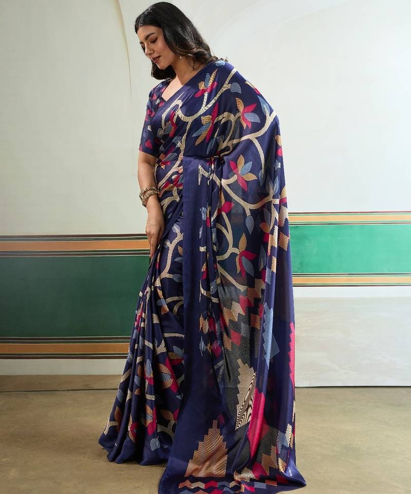 | Product Name | Blue Color Soft Modal Satin Ajrakh Print Saree – Timeless Ethnic Collection | |