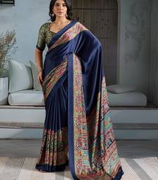 Blue color soft modal satin ajrakh print saree – timeless ethnic collection