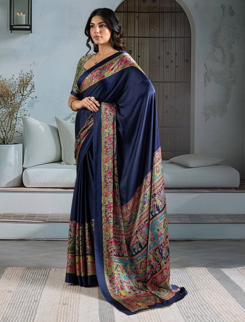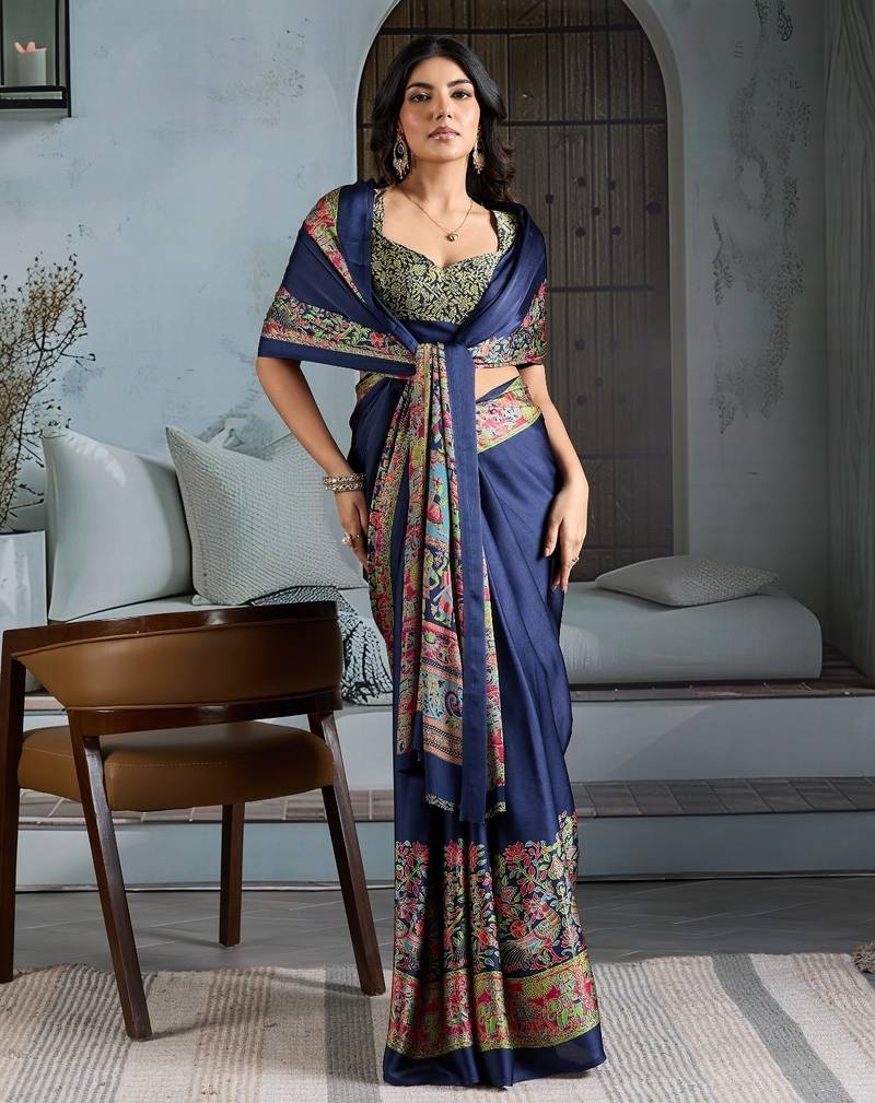 | Product Name | Blue Color Soft Modal Satin Ajrakh Print Saree – Timeless Ethnic Collection | |