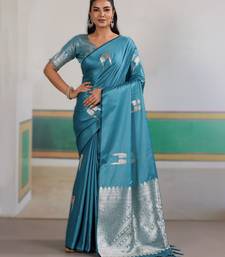 | • | Saree | : | Color- Blue / Fabric- Pure Satin |