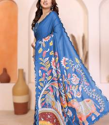 | Product Name | Blue Rich Manipuri Silk Kalamkari Digital Print Saree With Mirror Work Border | |