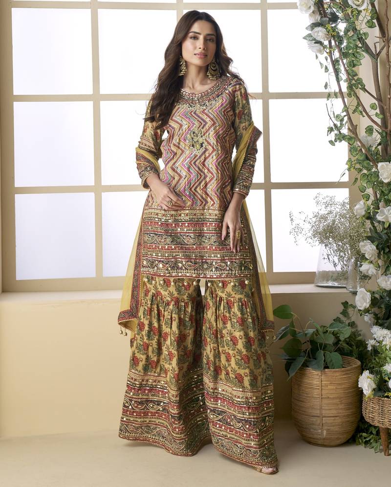 | Product Description | Upgrade Your Ethnic Wardrobe With This Premium Quality Stitched Suit Crafted From Heavy Crepe Silk. Designed With Vibrant Multi Digital Prints And Intricate Aari Work, This Outfit Offers A Perfect Blend Of Elegance And Comfort—Ideal For Festive Occasions, Weddings, And Parties. |