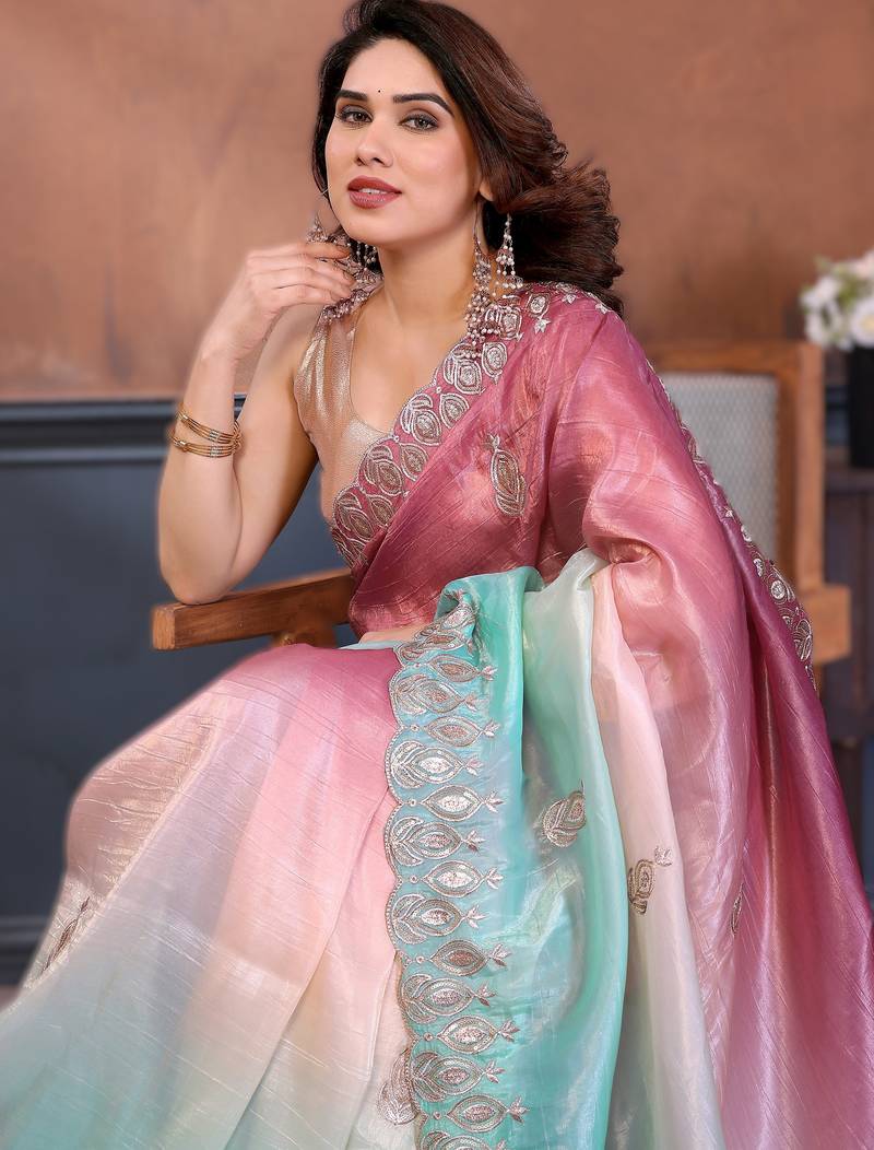 | Embellish | Step Into Elegance With This Rich Gold Crush Silk Saree, Beautifully Designed With Padding Embroidery Work And A Stunning Multi Tone Color Combination | |