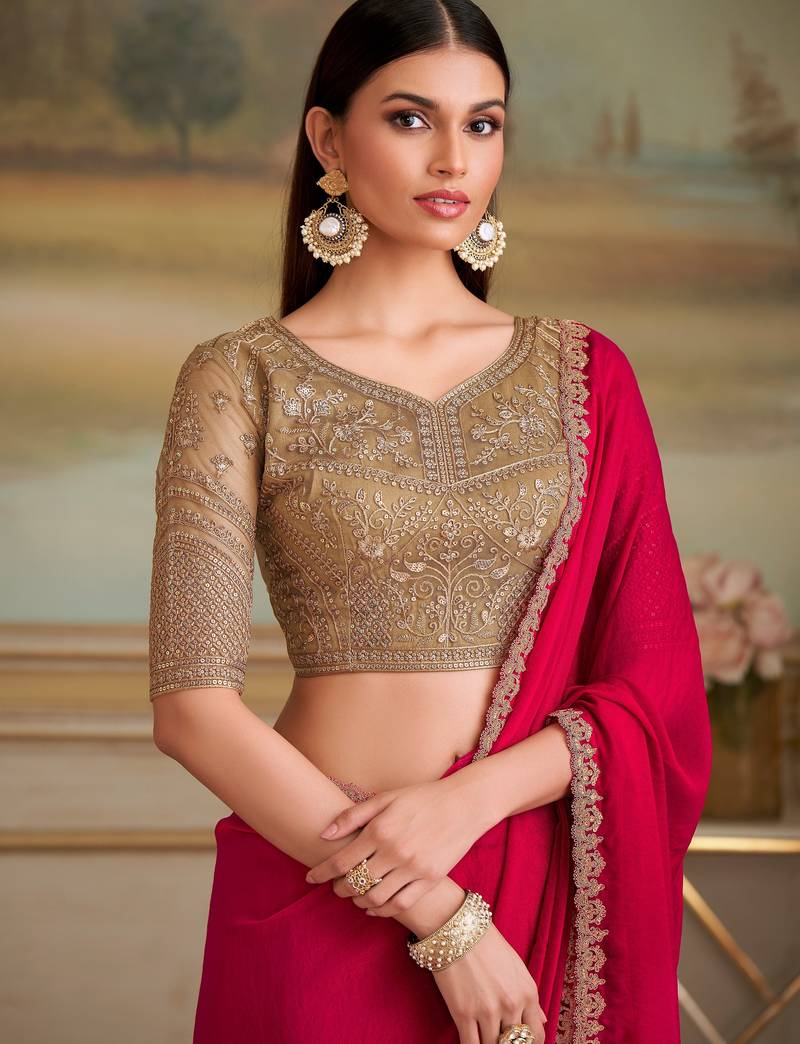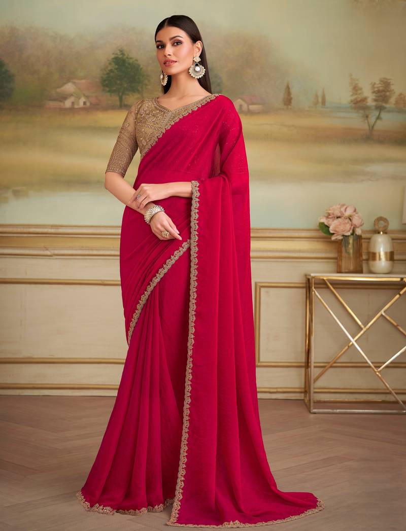 | Product Name | Cherry Red Shining Georgette Saree With Tussar Silk Blend Blouse | |