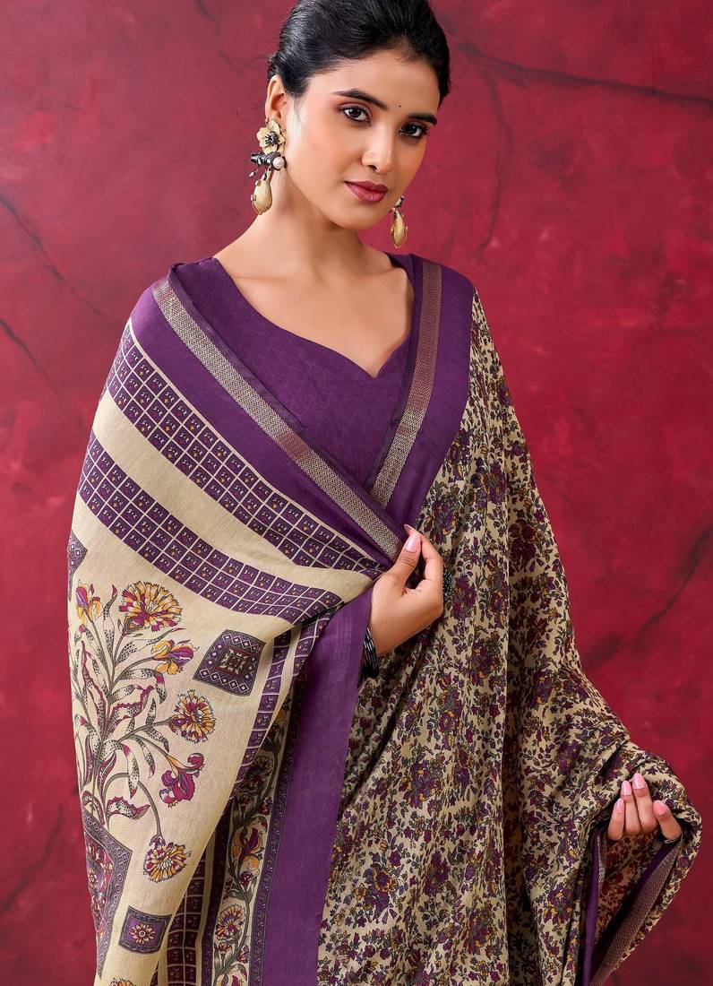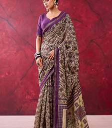 Dark purple elegant polyester viscose chanderi saree with zari weaving & printed design