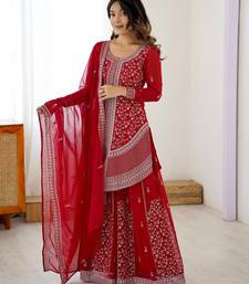 | • | Kameez | : | Color- Red / Fabric- Faux Georgette |