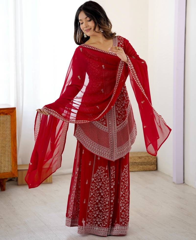 | • | Dupatta | : | Color- Red / Fabric- Faux Georgette |