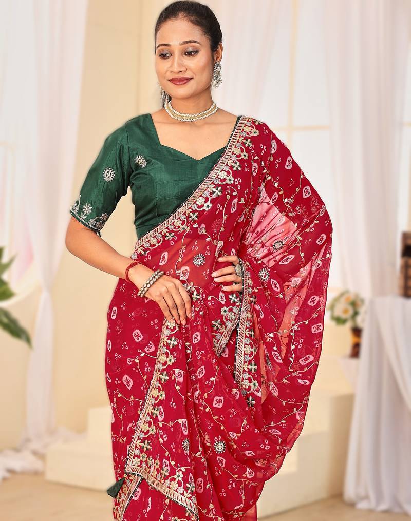 | Embellish | Elevate Your Ethnic Collection With This Stunning Red–Rani Colour Bandhani Catalogue, Beautifully Adorned With Elegant Gotta Embroidery. | |