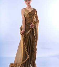 Gold bollywood style designer soft organza saree with sequins lace border