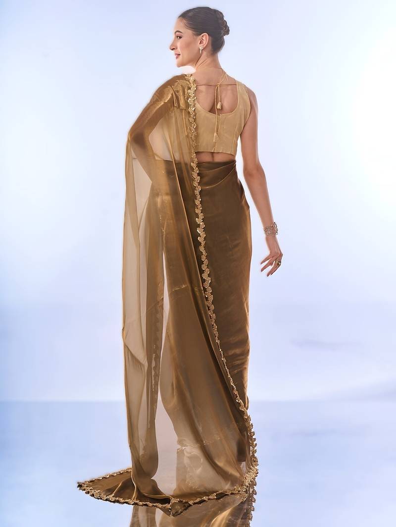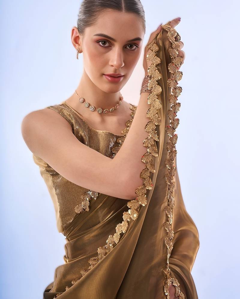 Product Name Gold Bollywood Style Designer Soft Organza Saree With Sequins Lace Border