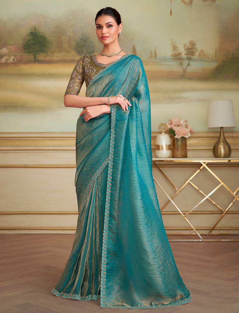 | Product Name | Golden Blue Checks Georgette Saree With Tussar Silk Blend Blouse | |