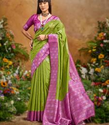 Green handloom weaving paper silk saree with matching paper silk blouse