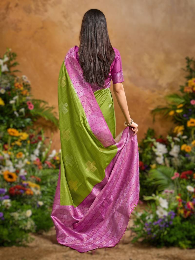 Product Name Green Handloom Weaving Paper Silk Saree With Matching Paper Silk Blouse