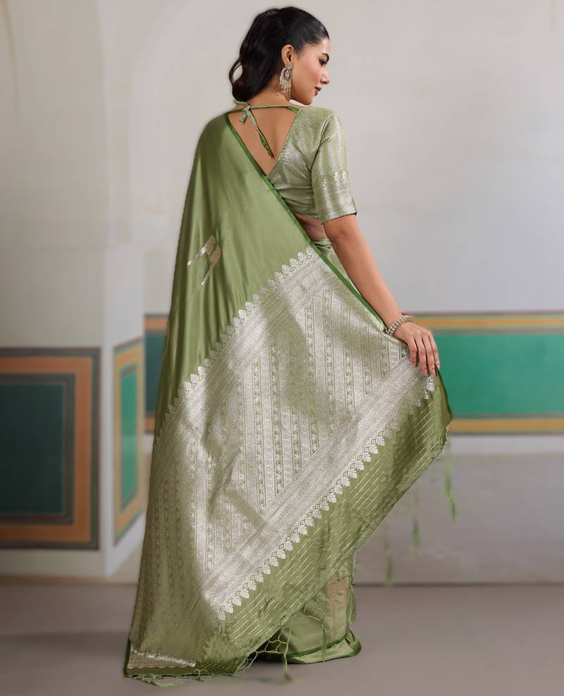 Green new pure satin handloom weaving outfit premium quality