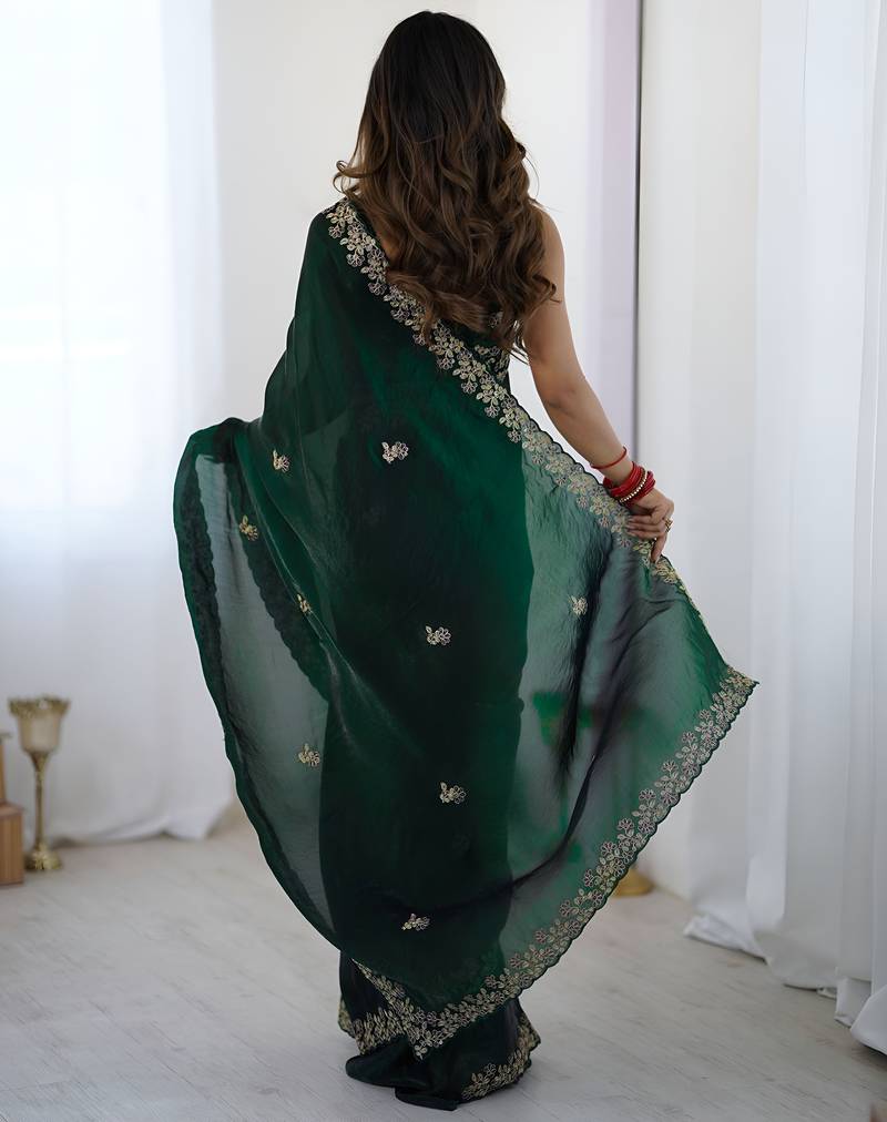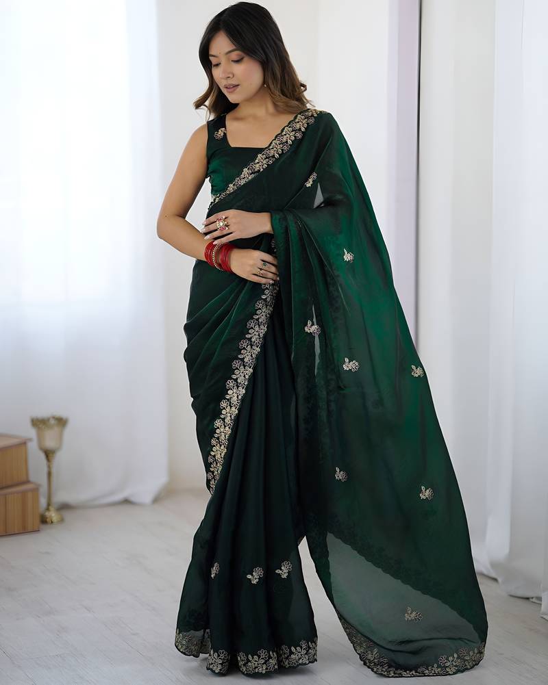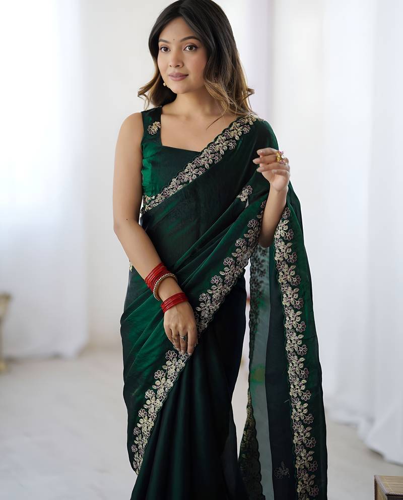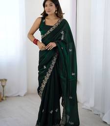 Green party wear fandy satin silk saree with embroidery work in 7 colors