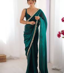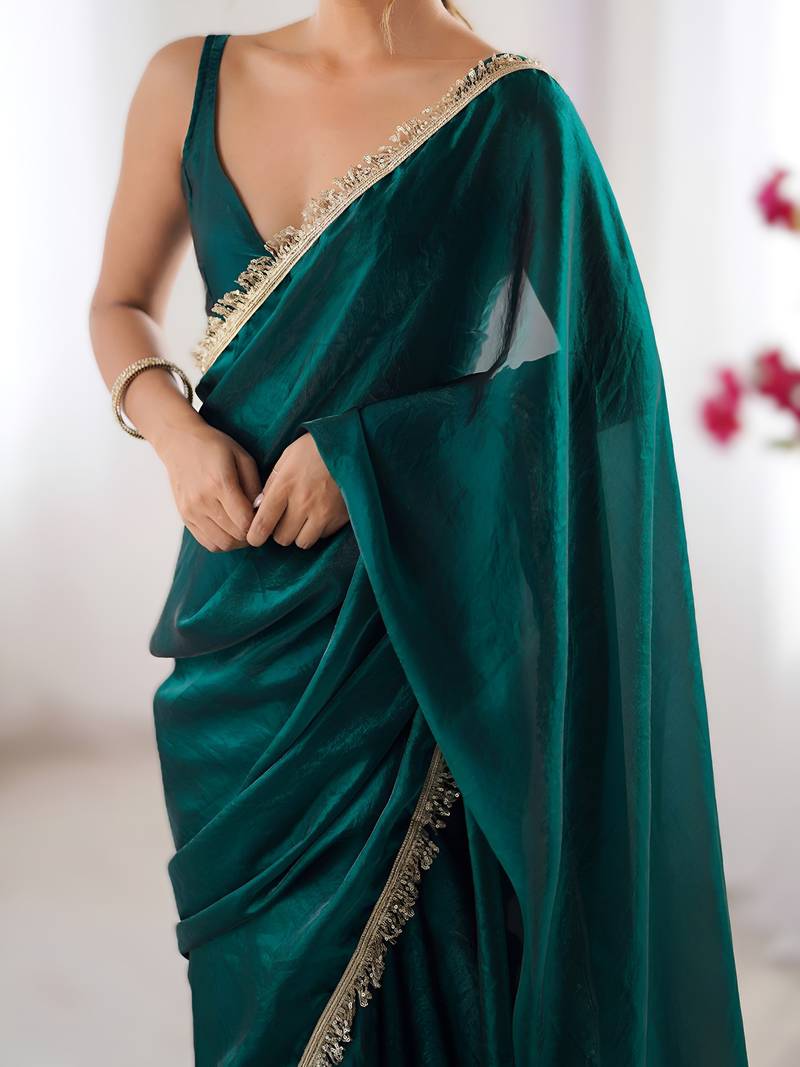 Green soft space silk saree with sequin zalar lace border & matching blouse