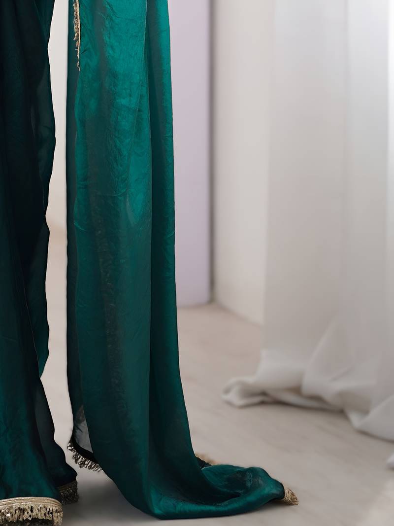| Product Name | Green Soft Space Silk Saree With Sequin Zalar Lace Border & Matching Blouse | |