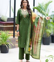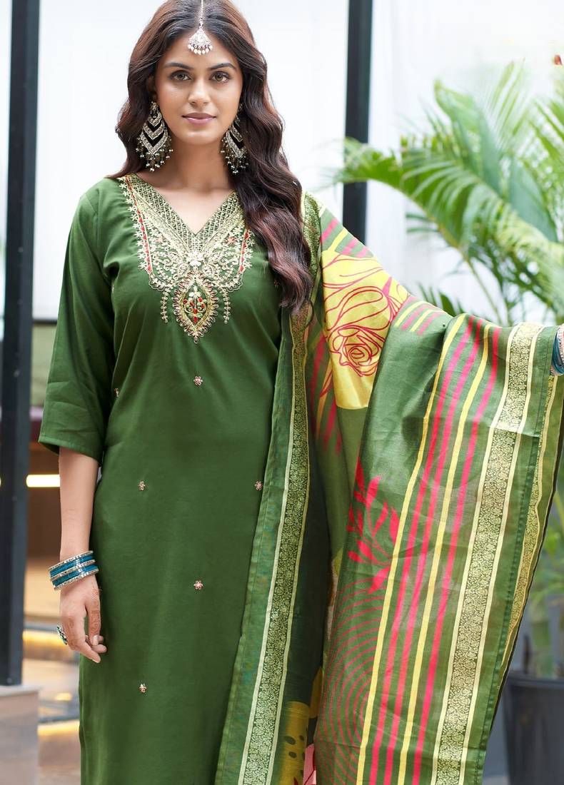 Green women’s premium viscos roman silk kurti set with hand & embroidery work stitched