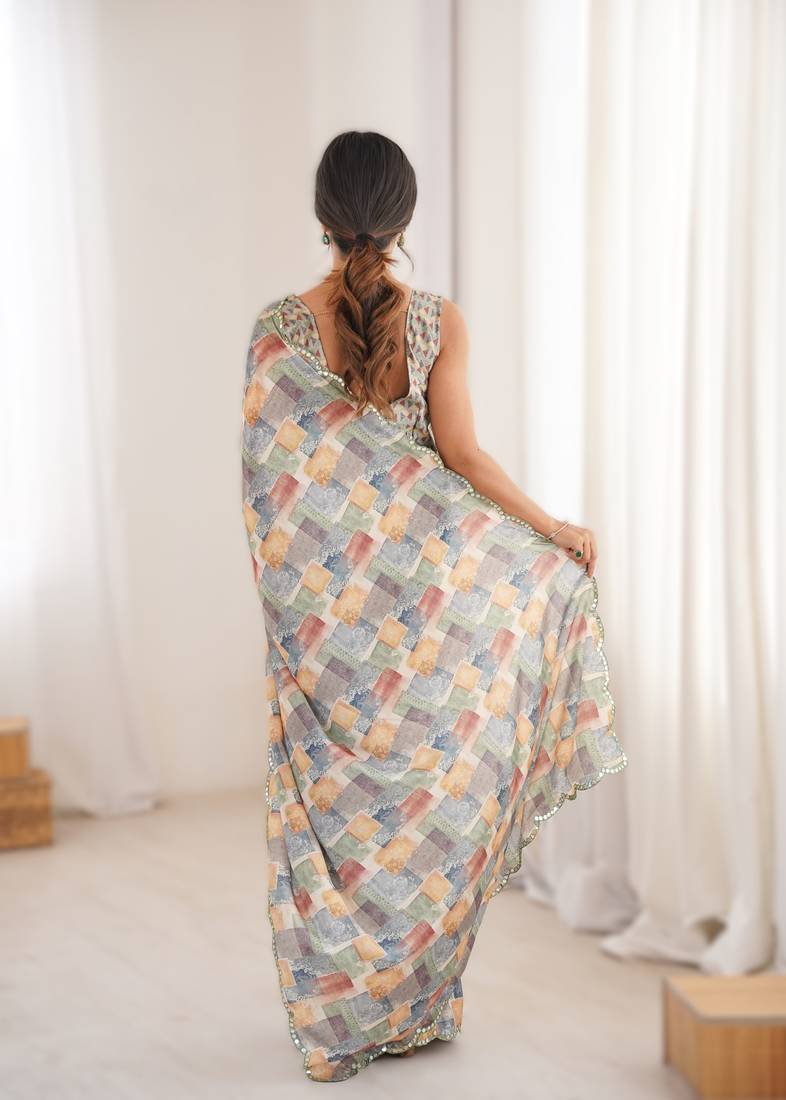 | Product Name | Multicolor Heavy Chinon Printed Saree With Mirror Work Border | |