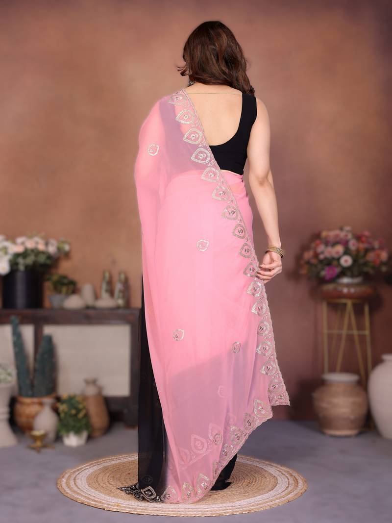 | Embellish | Step Into Elegance With This Stunning Heavy Georgette Silk Saree, Designed To Make You Shine At Every Party Or Wedding Celebration. | |