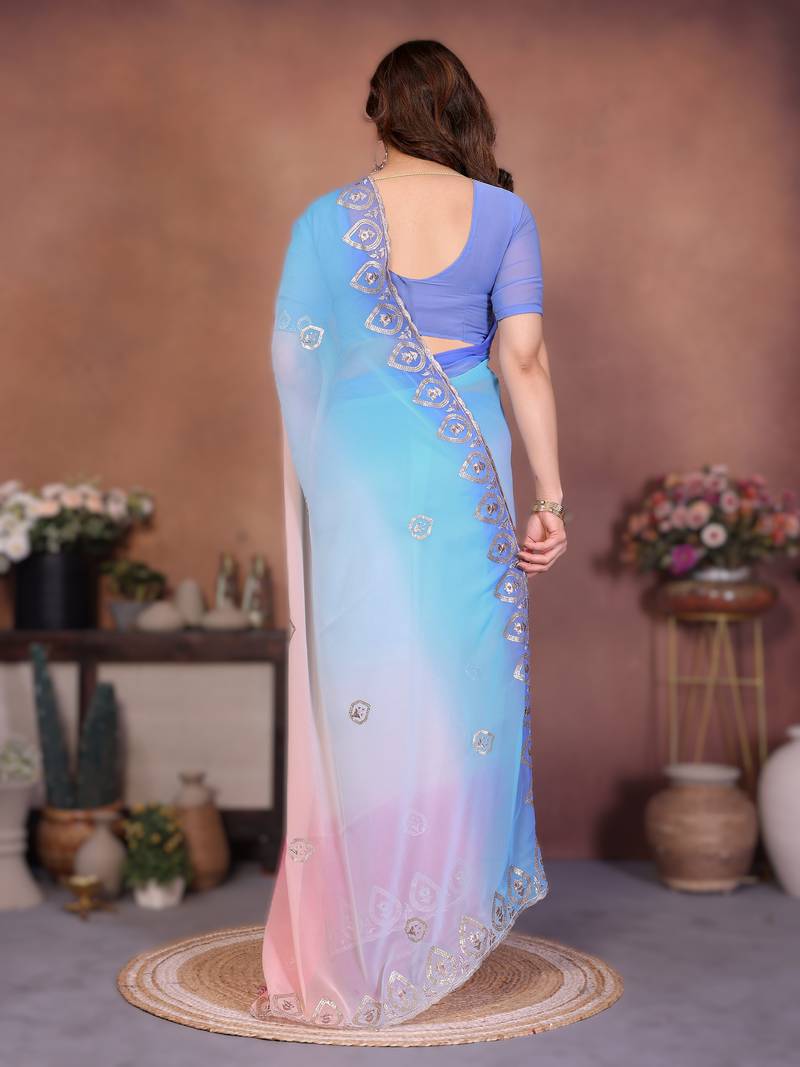| Embellish | Step Into Elegance With This Stunning Heavy Georgette Silk Saree, Designed To Make You Shine At Every Party Or Wedding Celebration. | |