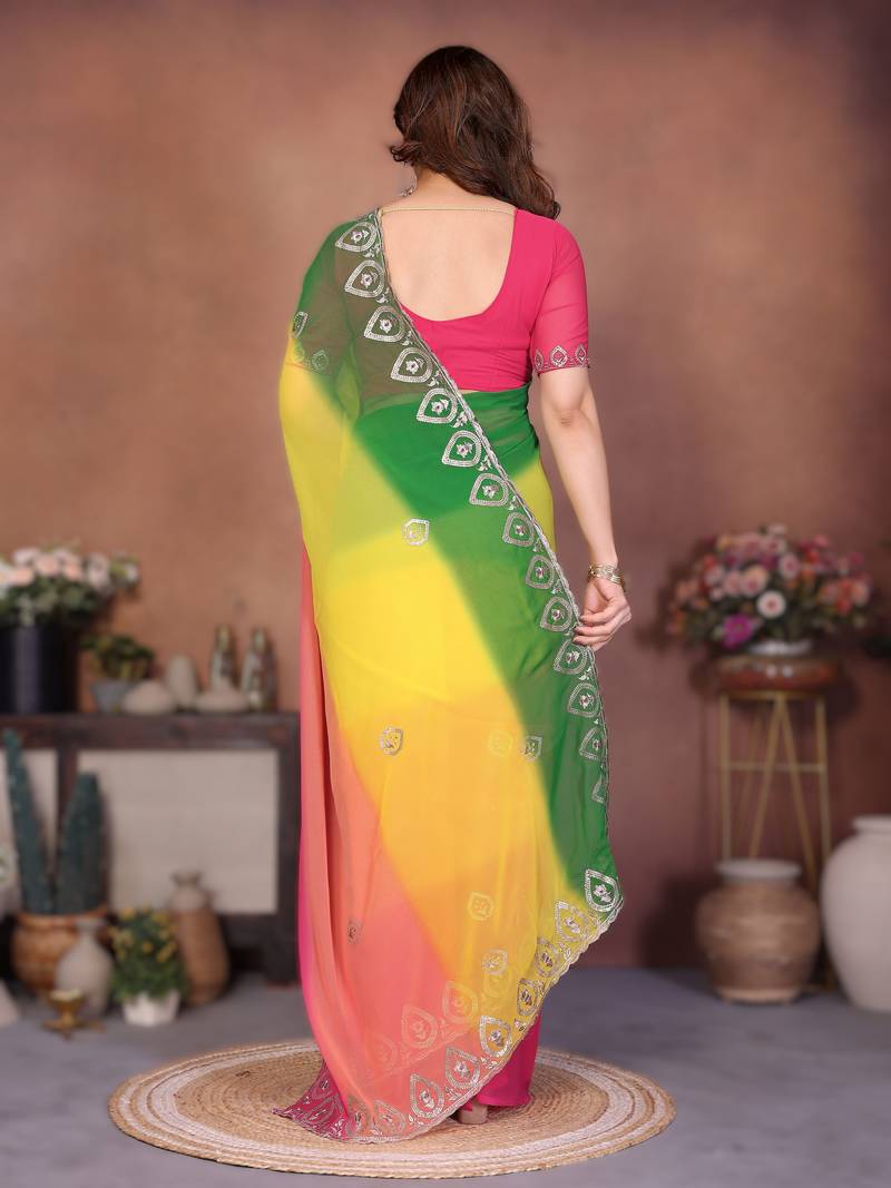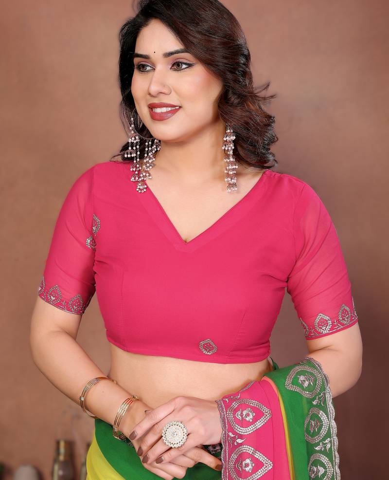 | Embellish | Step Into Elegance With This Stunning Heavy Georgette Silk Saree, Designed To Make You Shine At Every Party Or Wedding Celebration. | |