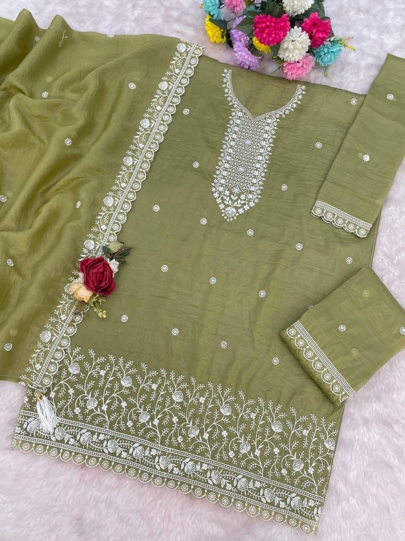 | • | Dupatta | : | Color- Olive / Fabric- Fancy Fabric |