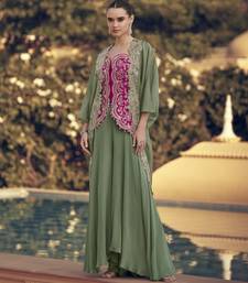 | Product Name | Green Chinon With Sequins Indo Western Jacket Style Palazzo Suit | |