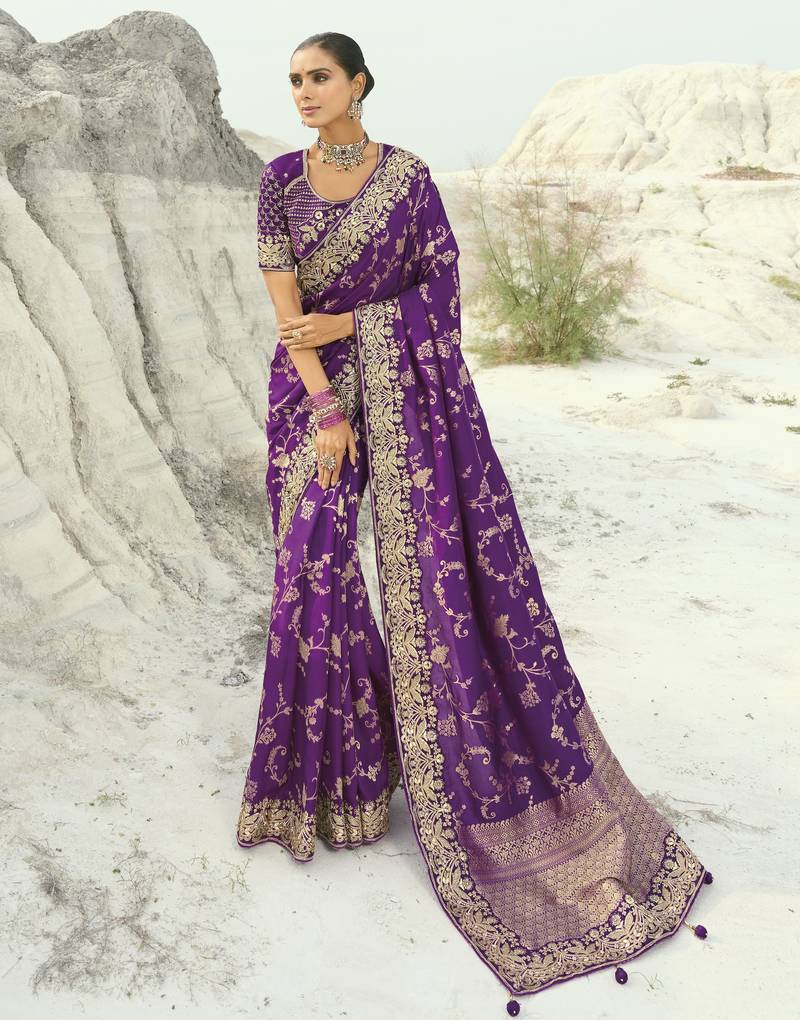 | Product Name | Jamli Purple Dola Viscose Saree With Silk Blend Blouse | |