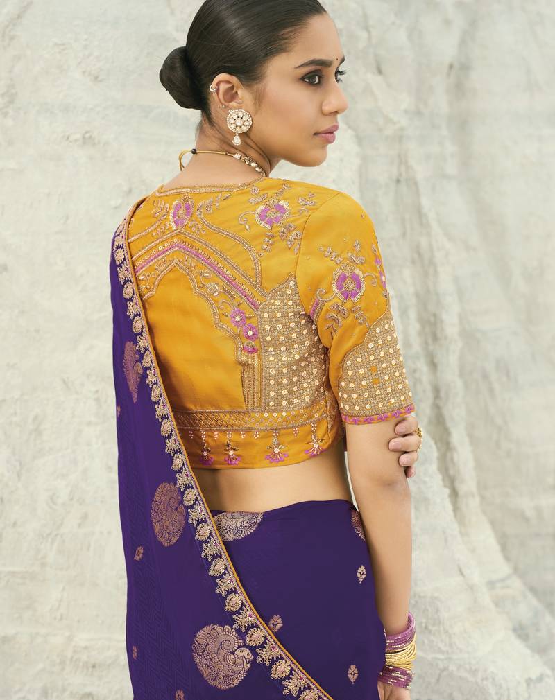 | Product Name | Jamli Purple Organza Viscose Satin Saree With Silk Blend Blouse | |
