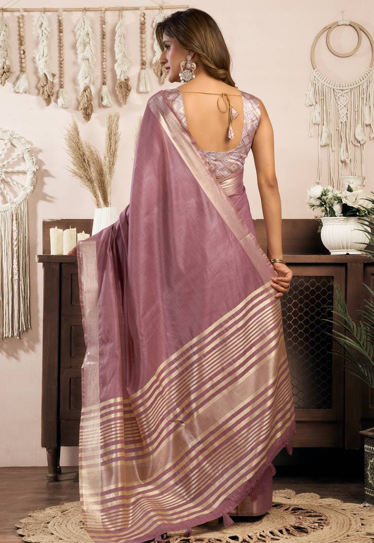 | Embellish | Elevate Your Ethnic Wardrobe With This Beautiful Khadi Cotton Saree Featuring An Elegant Jhallar Border And Paired With A Rich Brocade Blouse. | |