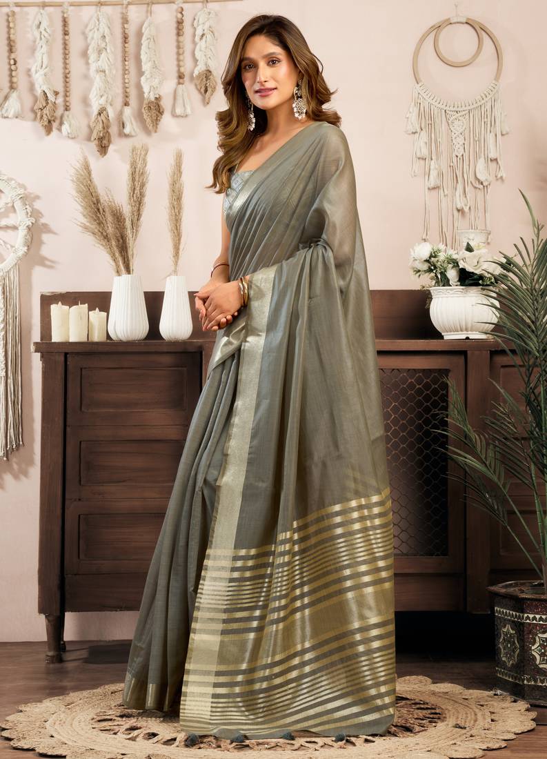 | Embellish | Elevate Your Ethnic Wardrobe With This Beautiful Khadi Cotton Saree Featuring An Elegant Jhallar Border And Paired With A Rich Brocade Blouse. | |