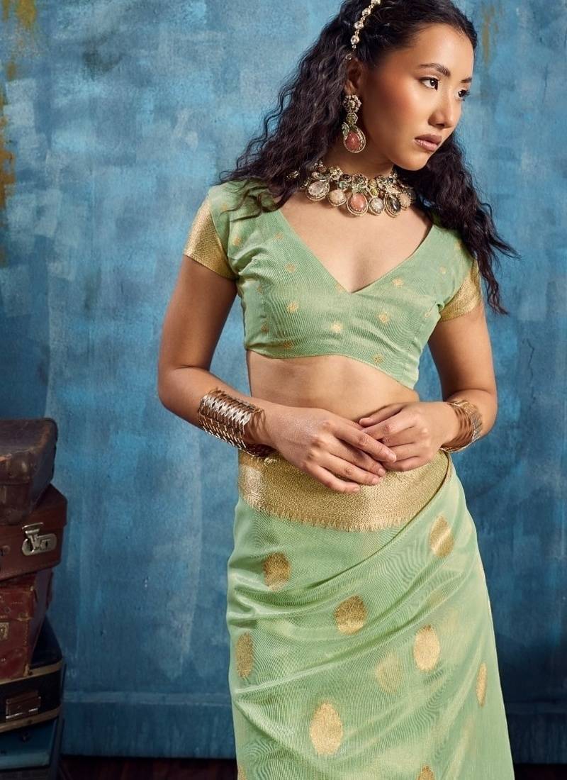 Light green color luxurious zari tissue handloom saree – classic ethnic collection