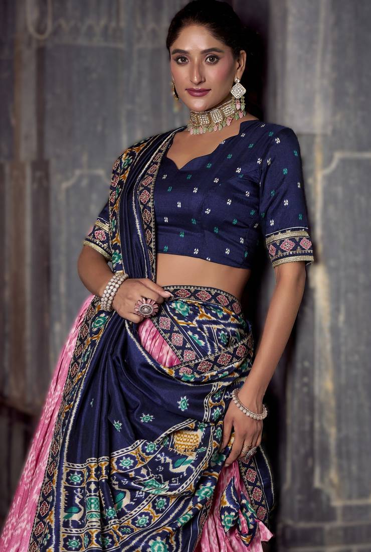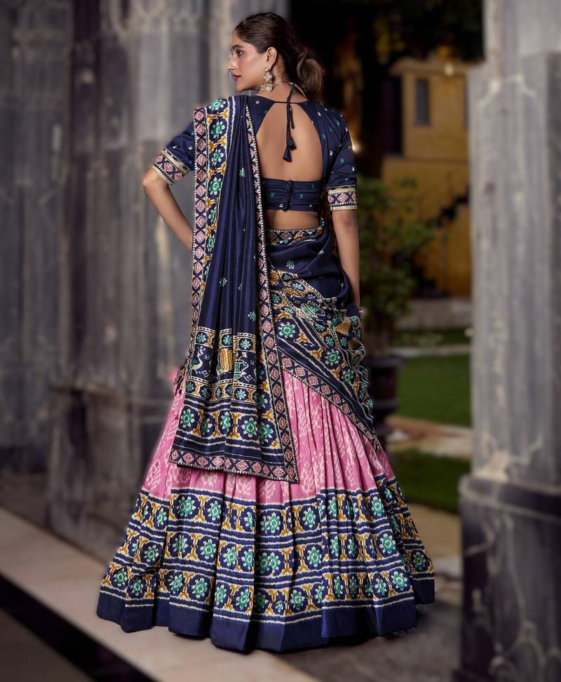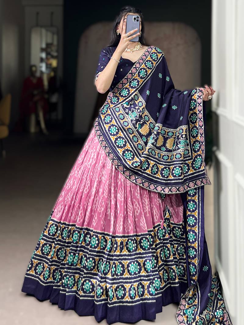 | Product Name | Light Pink Tasar Silk Ikkat Printed Lehenga Choli Set With Embroidered Blouse & Dupatta | |