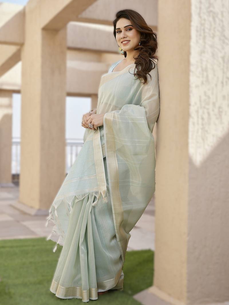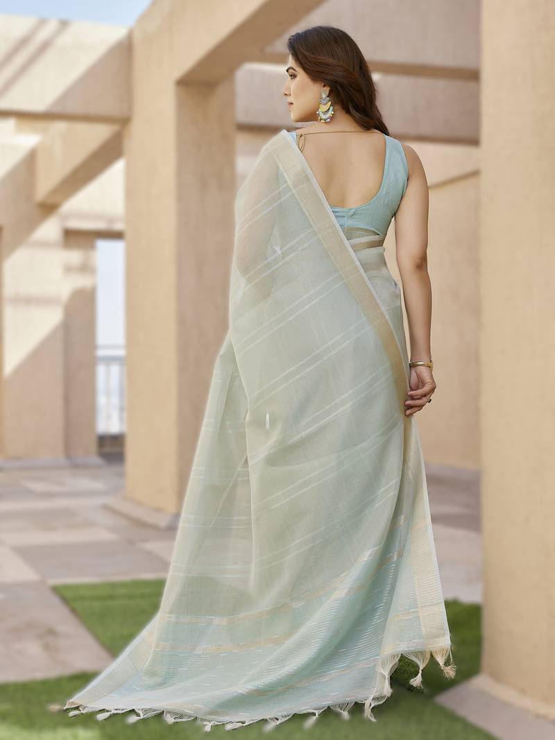 | Product Name | Light Pista Soft Tissue Linen Silk Saree With All Over Zari Linings & Rich Zari Pallu | |