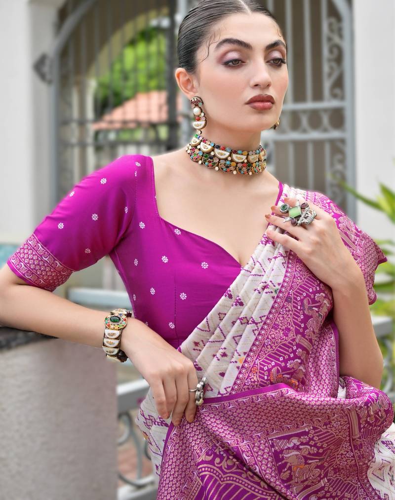 | Embellish | Presenting Our Latest Premium Catalogue Featuring Elegant White And Cream Ajrakh & Patola Weaving Sarees, Crafted With Timeless Classic Designs. | |