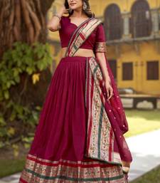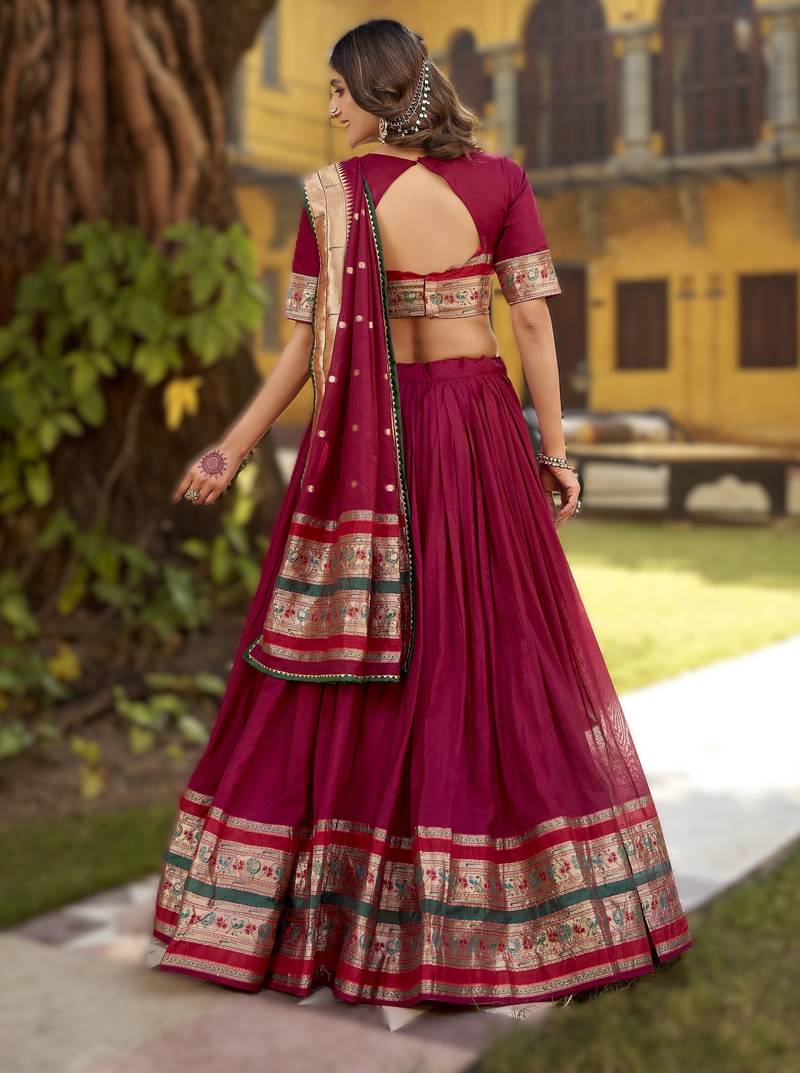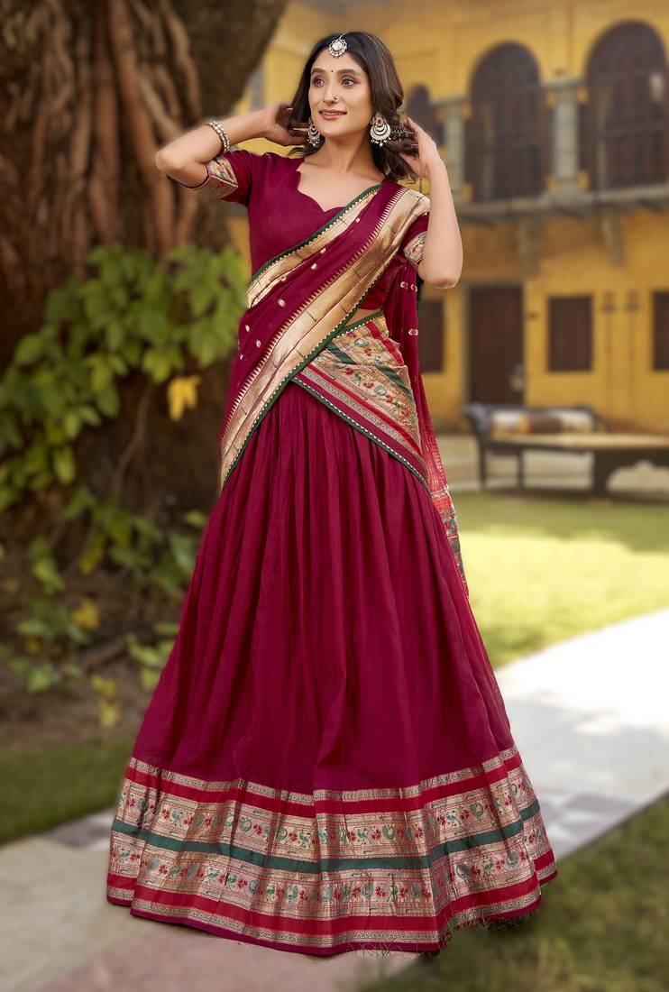 Maroon paithani style pure chanderi zari weaving lehenga choli with dupatta ready made (32 to 42)
