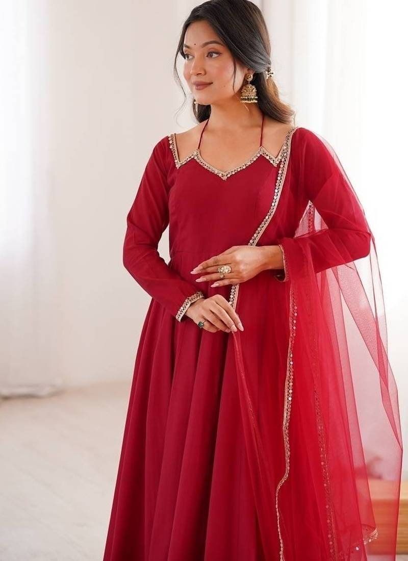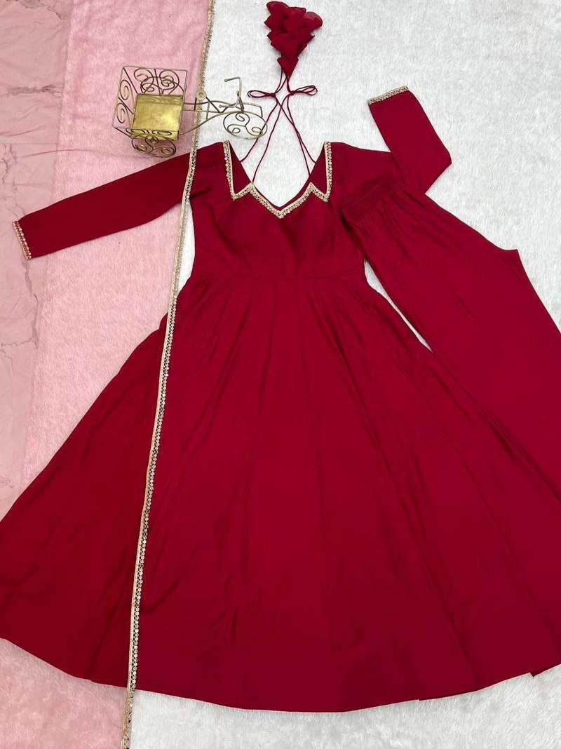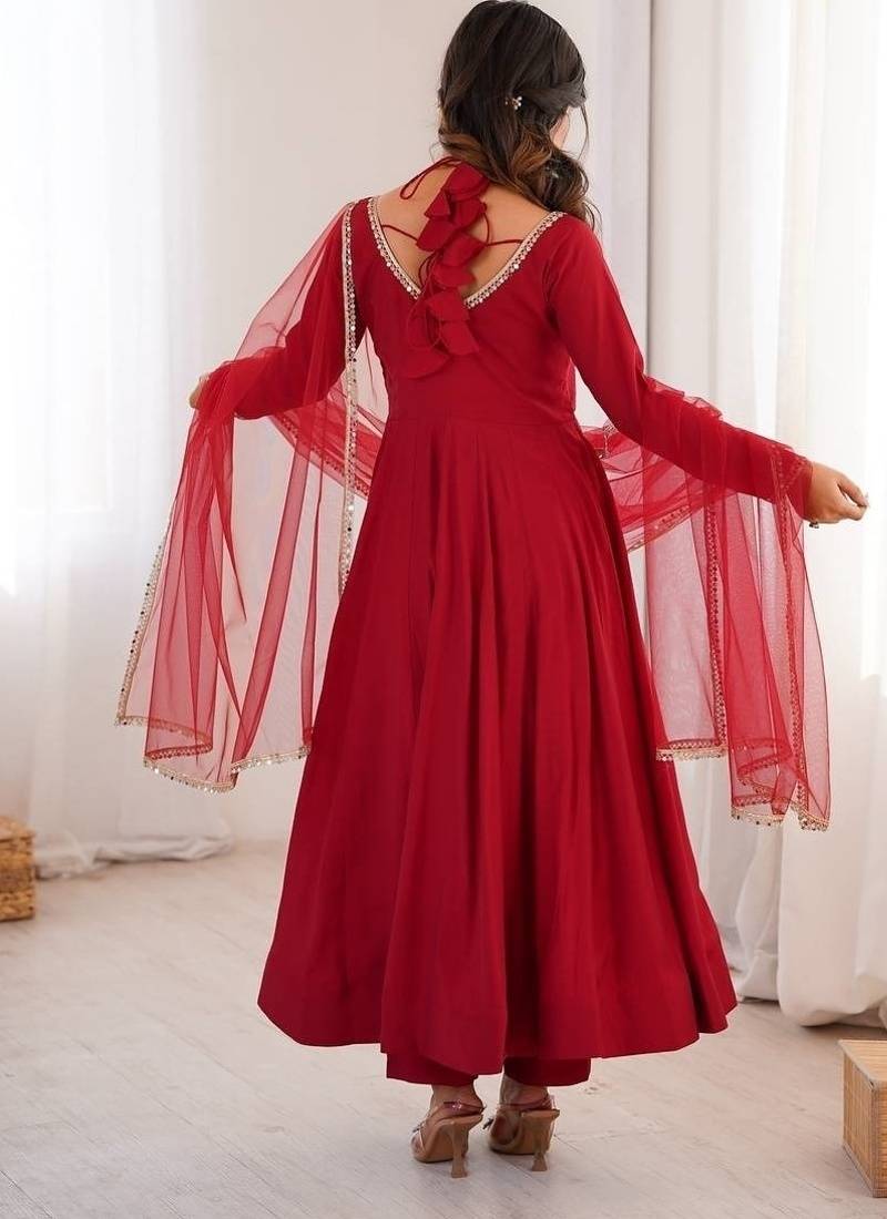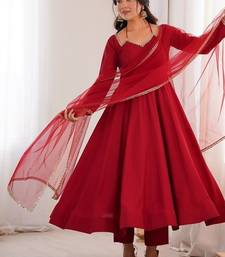 | Product Name | Maroon Roman Silk Chanderi Fully Flared Anarkali Set With Dupatta & Pant | |