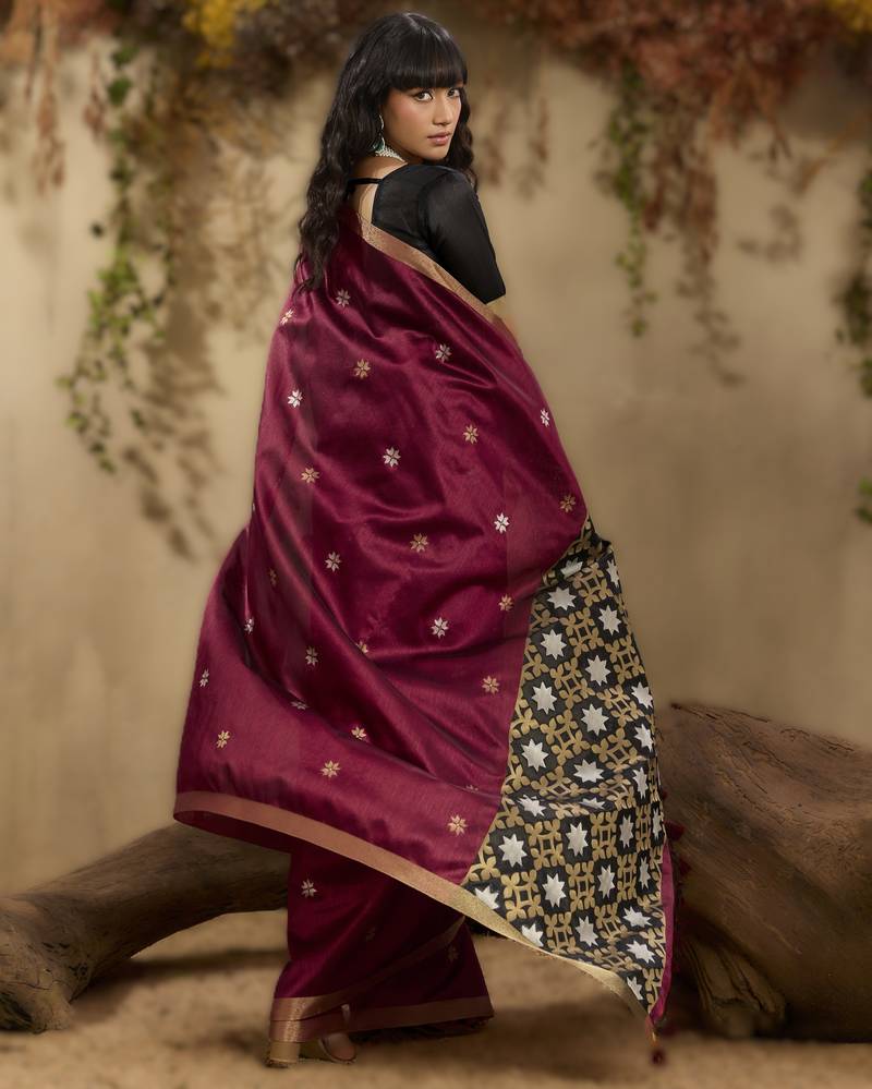 Saree : Color- Maroon / Fabric- Tussar Silk
