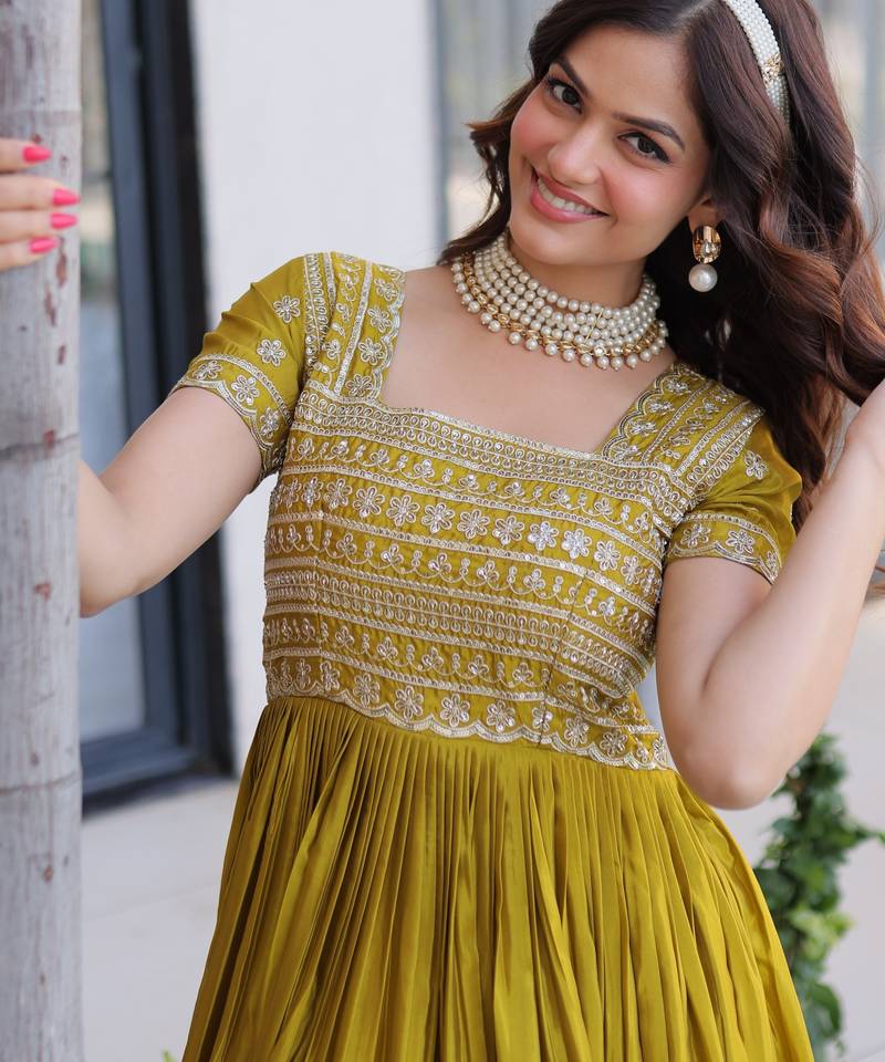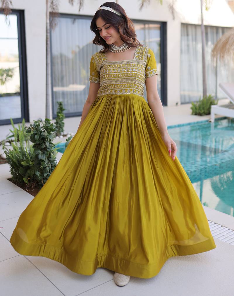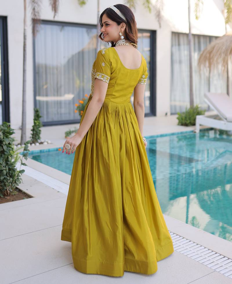 | Product Name | Mehendi Women Ho Fabric Sequins & Zari Embroidered Gown With Pipe Beads Work | |