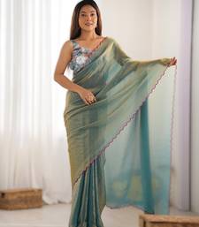 Green most demanded pure space silk saree with scalloped border & designer beaded blouse